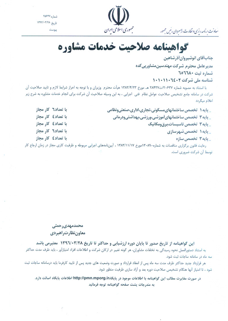 Paykadeh Consulting Engineers was established in 1987 and during of its professional activity in offering services in the fields of Architecture and Urban Design & Planning, has been presenting consulting services in observation, design and supervision for more than 300 projects.