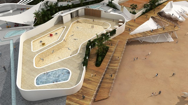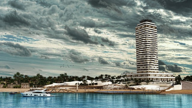 Hotel ziggurat is the first five-star hotel in Qeshm coastal town with an area of 32,000 m² and 200 rooms. The client wanted to design a high building as a symbol of the city. Hotel tower has been designed as a modular Square that each of floors turns around its axis and this appears a frolic and statuesque tower. Softness and geometric slips is extended also throw the landscape design and perspective of the hotel is shaped in organic form.