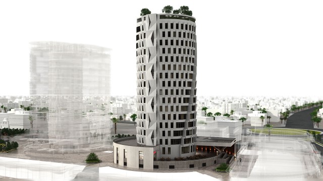 This 15-storey tower with 70 units of modern office spaces and services required, including the lobby, leisure, conference suite, control room, restaurants and coffee shops is designed on north of the Golden City.