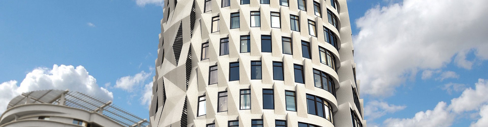 Bearing wall systems with no evidence of structural beams for the ceiling have been used in addition to separate units by shear walls, have optimal floor height and consequently reduce the overall height of the tower.