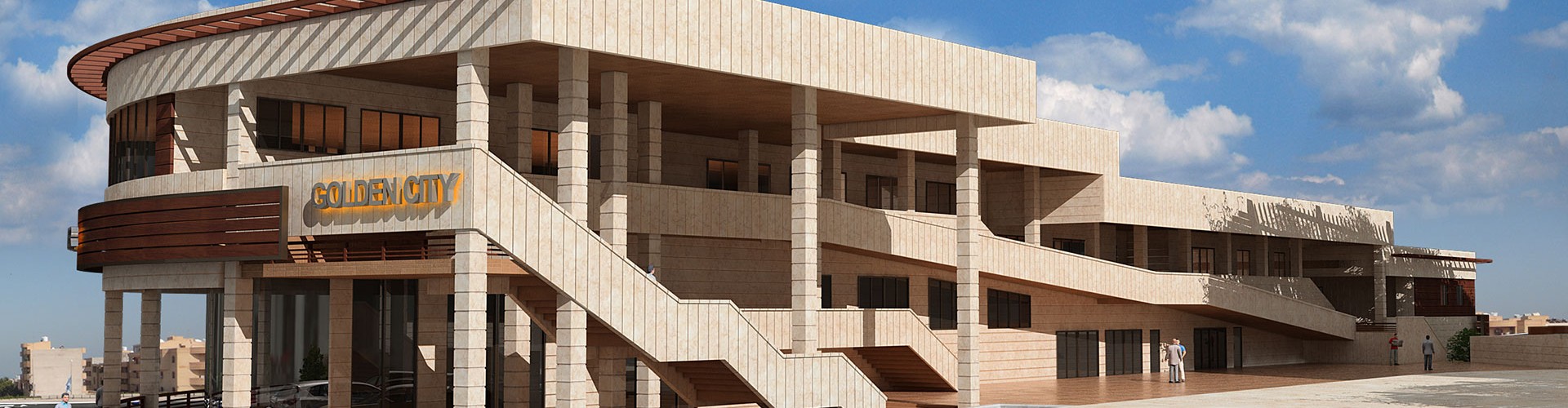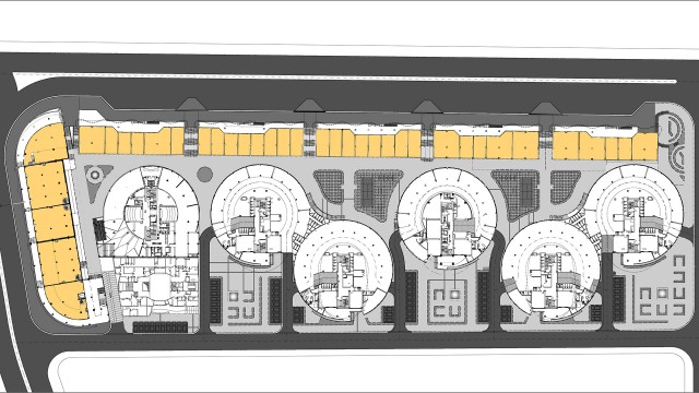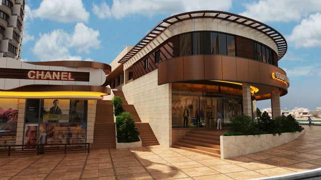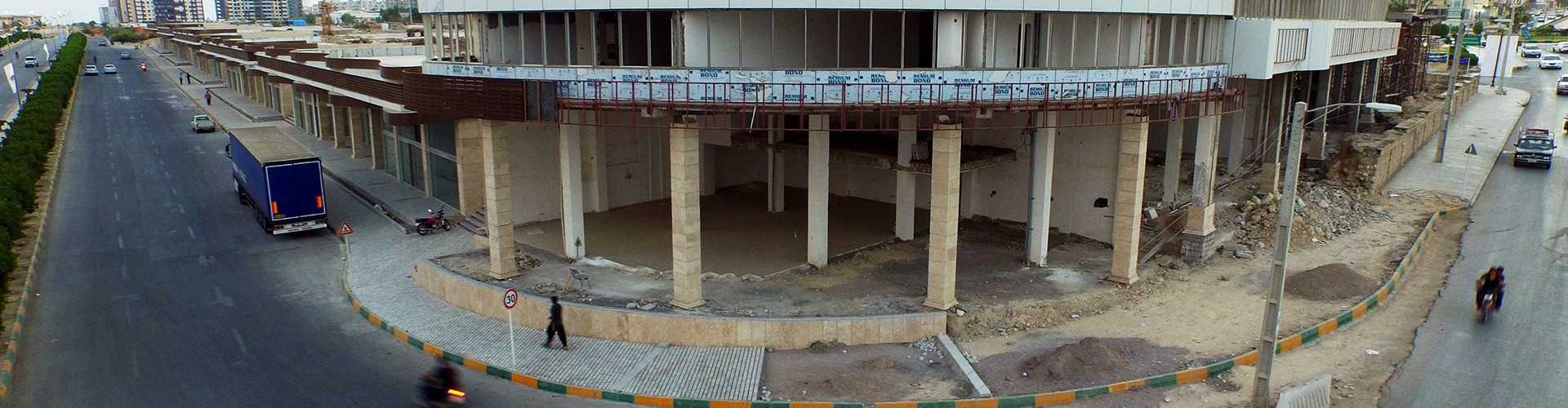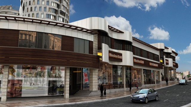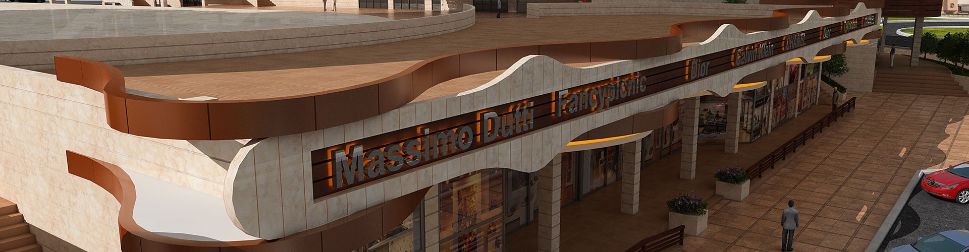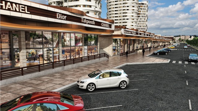 This complex have been designed and constructed in a part of north site the golden city land and along the adjacent street as liner form. The formation of complex has been achieved from the 6-meter elevation difference between north site of golden city and adjacent street in length 330 and in depth of 10 meter. Due to the importance of establishment the pedestrian access from residential towers to adjacent street, project site has been designed as individual blocks with a length of 50 meters and in partition of blocks is allocated pedestrian access route through wide stairs (with the role of public gathering space). The roof of commercial blocks because of aligning with the residential floor has been designed as green space. Elevation designing is in a way that by using dynamic and flowing lines creates a sense of movement along the commercial complex.