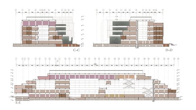 The main entrances of the building blocks have been defined by the wrinkles height difference as well as their retreat. Moving the folded pieces in façade creates perspective and alternating full and empty spaces that in order to break the long length project and make it more attractive and have been considered along the connection axes adjacent the complex. Glass block at the junction of building blocks, make blocks of vertical and horizontal connection and continuous visual links of two parts of the complex.