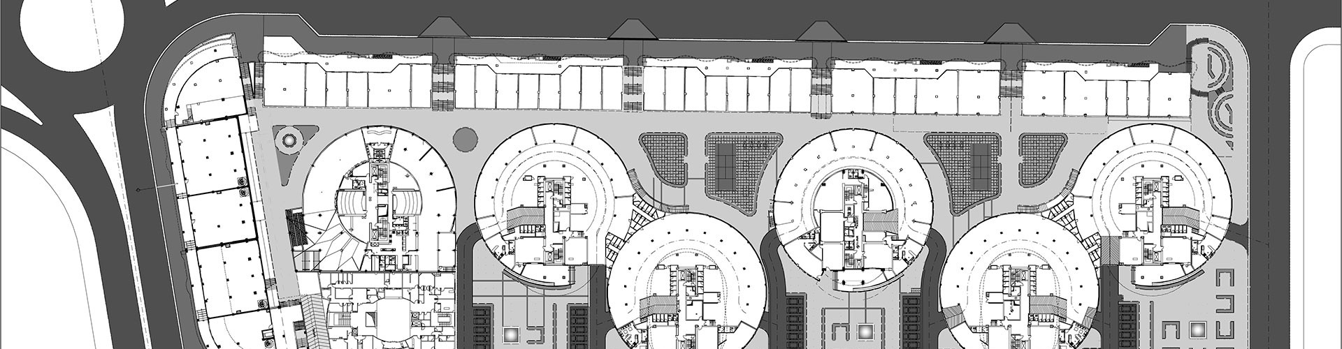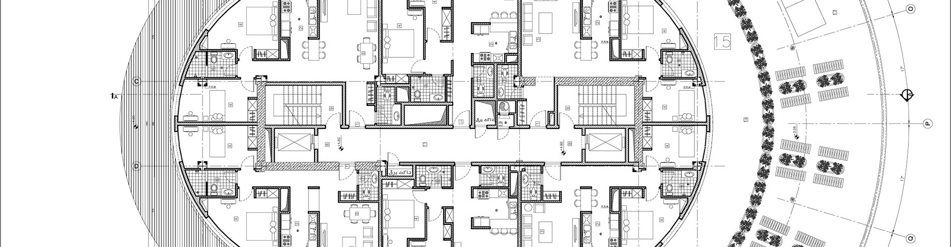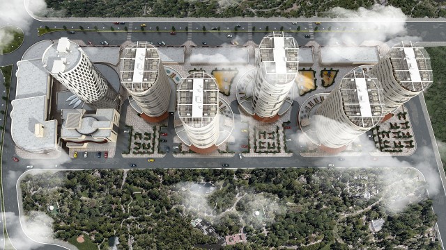 This residential complex consisting of 400 residential units in five towers of 11 to 15 floors that due to the low width of land and also to provide the best view (the sea) have been allocated in north to south direction. To prevent shading and overlooking, towers moved decussate to east and west direction. The first and second towers also fourth and fifth have common public and service spaces in basement and ground floor due to optimum use of land. The middle tower of complex in terms of residential types has been designed as high-rise VIP tower with duplex units that is a skyline critical point of the complex.